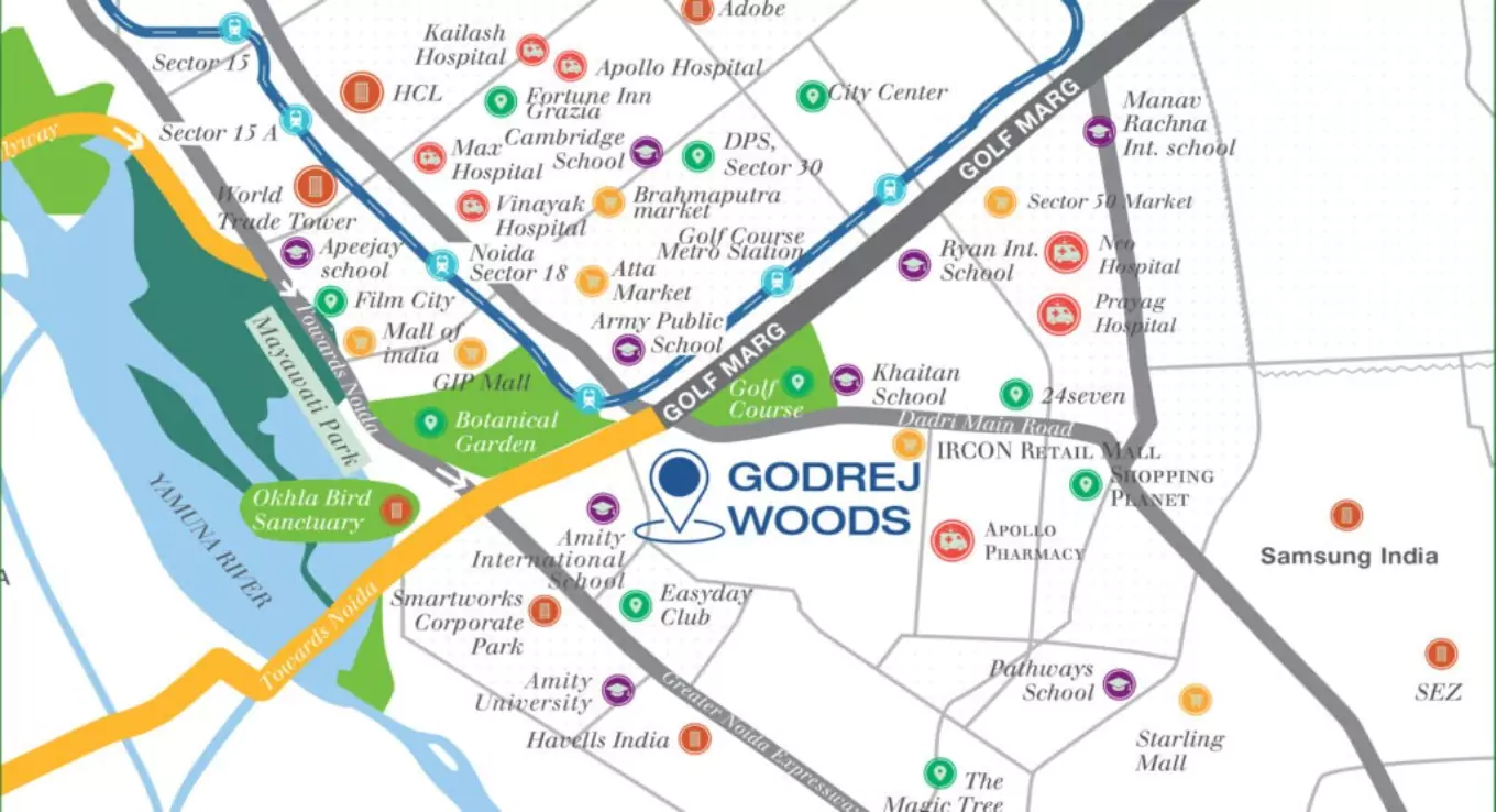 A lavish lifestyle awaits you at Godrej Woods smart residential township, which is one of the most prominent projects, strategically located right in the heart of Noida, next to Noida Golf Course (950 m), DLF & GIP Mall: (5 mins drive away) and the famous Botanical Garden. No wonder its’s location gives an edge over the other projects in the city. The project has all required certifications and Plumeria Godrej Woods RERA that ensures the project’s credibility. Apartments within the township are designed to let you enjoy the perks of a modern lifestyle, staying close to nature and ample greenery.
