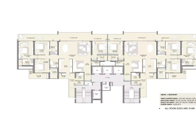 The Cullinan is M3M’s new project in Noida. It is an example of an exponentially rich, sky-high living experience that delivers magnificent cityscape views. M3M Cullinan’s 3, 4 & 5 BHK apartments lead in delivering elegant living experiences.
